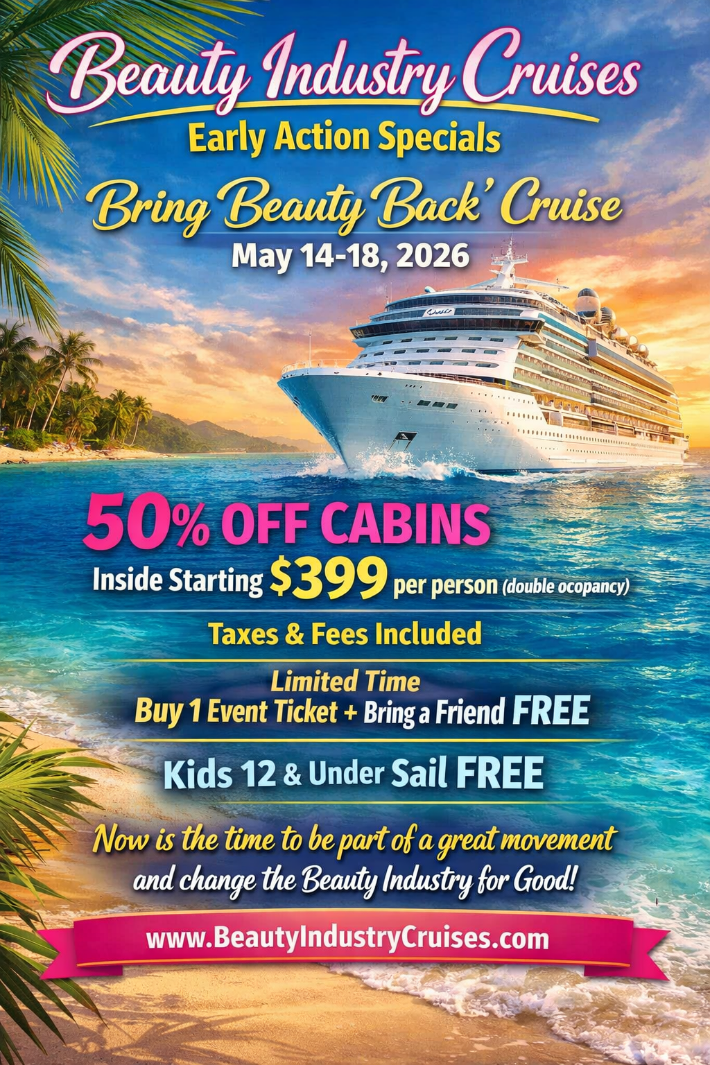 Be the first to know about upcoming cruises, exclusive pricing, onboard education, and VIP beauty industry experiences.