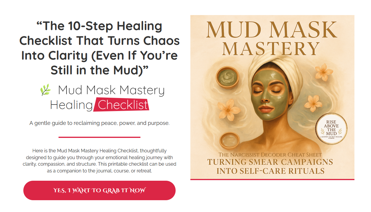 The Free Resources Hub for Mud Mask Mastery If you've found your way here, it's not by accident. Whether you're in the middle of a storm, recovering from betrayal, or just beginning to piece yourself back together—this space was created with you in mind. At Mud Mask Mastery, we believe healing isn’t a luxury—it’s a lifeline. And it should be accessible. That’s why this page is filled with free, faith-rooted tools to help you take your next step forward. From calming affirmations and soul-deep journaling prompts to survival starter kits and educational downloads, these resources are here to remind you: You’re not crazy. You’re not alone. And you can recover with grace, strength, and peace. Take what you need. Return when you're ready. And know that every word, every worksheet, and every encouragement here is covered in prayer—just for you. Welcome home.
